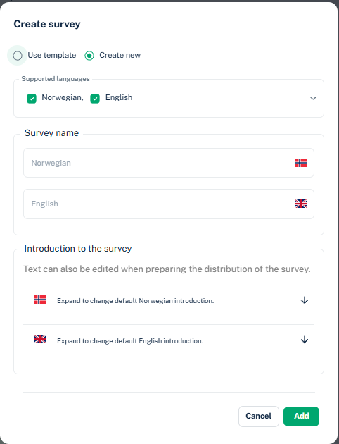 - Note! If your survey supports multiple languages, select all relevant languages to set default alternatives for each.