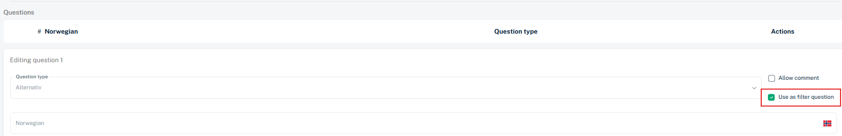 - Do you want to filter by questions with options? You can do this by registering filter questions. Select or create a form with options: When creating or editing a question, you can check the box to mark the question as a filter question.