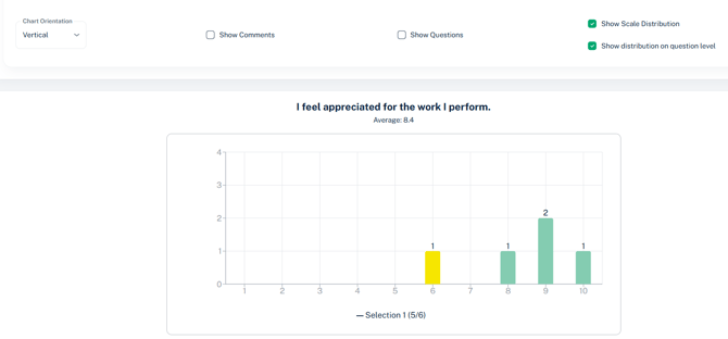 - If the survey is anonymous, a minimum of 5 respondents in the selection is required to view the results.