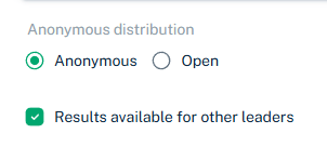 If you create an anonymous distribution, you will have the option to set the publication status: whether the results should be available to other managers, or only to the person who sent it out. This allows you, for example, to choose whether/when department managers should be able to see their reports.