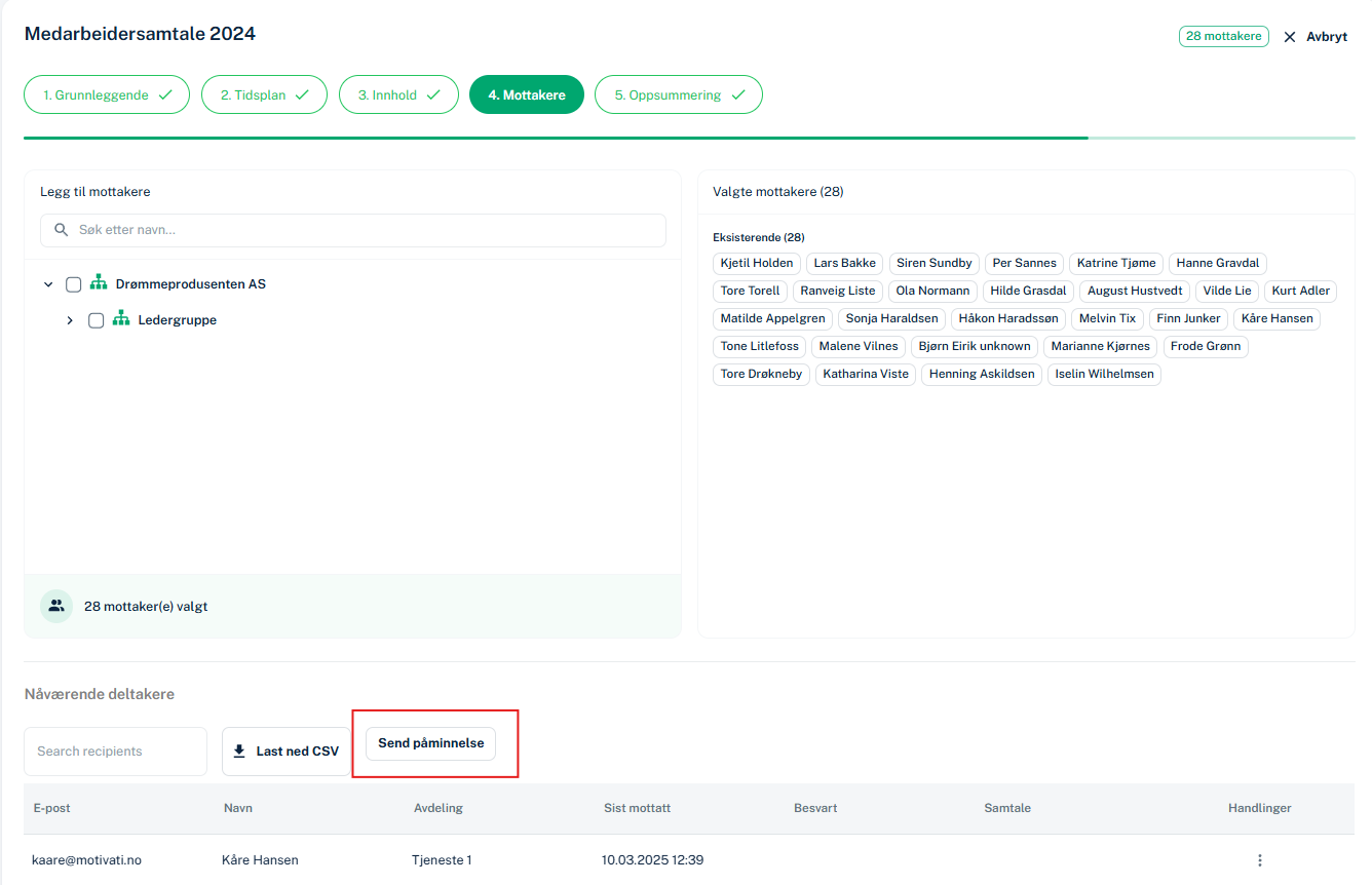 Før du endrer e-postadressen til mottaker eller sender påminnelse til alle deltakerne, kan du endre teksten til "e-post til mottaker" og "e-post påminnelse".